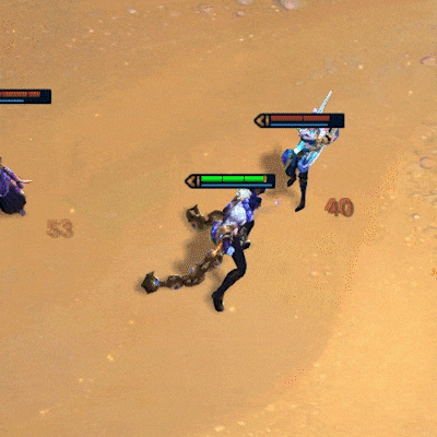 位移到当前攻击目标附近,造成魔法伤害并且治疗自身生命值。然后,对附近的敌人发出两次攻击,造成魔法伤害。