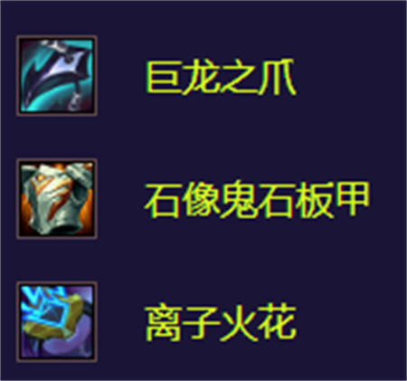 推荐装备:巨龙之爪+石像鬼石板甲+离子火花