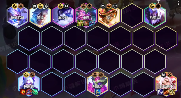 1、阵容组成:诺手、约里克、拉露恩、奥恩、塞拉斯、刀妹、阿兹尔、瑟提、洛/丽桑卓