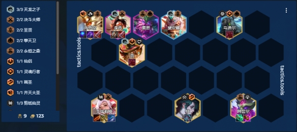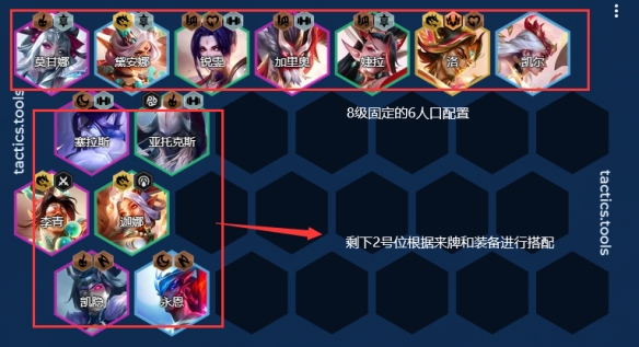 要点3:不要有强迫症,圣贤羁绊开的高对团队全面提升不一定最优。八级上个一星猴子,跟炮灰没什么区别,如果你给他三件装备,他也依旧是个长命一点的炮灰,而且也不可能在四阶段甚至五阶段上一个用处不大的单卡给多装备。对比下来,一星洛的作用会比较明显,是八级比较关键的人员配置。
