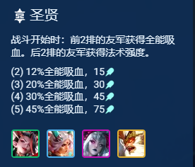 4圣贤相比于3圣贤,法强提升较少;正常情况百分之20吸血+装备的吸血要是能吸肯定是够了,被控死再多吸血都没用(但是如果能开出5圣贤肯定是推荐上的)