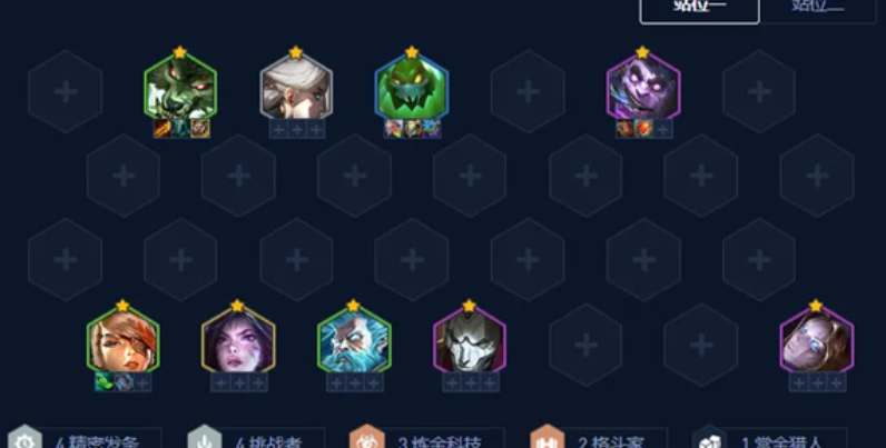 2、羁绊构成:4挑战 4精密 3炼金 2格斗(有炼金转给奎因开5炼金,有挑战转给基兰开6挑战)