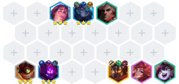 阵容解读:刚需卢登,不然阵容强度有点搞笑,和画之灵的卢登女警同理,需要大招打到敌方后排才能造成巨额的过量伤害,因此站位上,可让前排呈上图站位,让敌方前排往前格走一步,更容易让女警狙到后排,实现清屏。(如果担心后排被绕进来,可让风女站女警前面);其次因为女警和卢登都是AP伤害,最好配备一把电刀才能将弹射伤害提升到最大