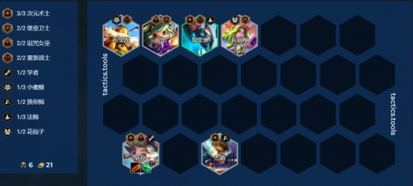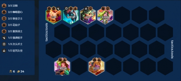 4人口可以先上萨勒芬妮,索拉卡,莉莉娅和加里奥或者波比,强势点在于萨勒芬妮的单卡强度,技能数值高有aoe,并且还有两花仙提供额外装备。过渡装备可以带羊刀,青龙刀等装备,中期胡小法师可以玩7法小法师,过渡到8人口可以玩花仙魔战滑板鞋,学者瑞兹以及时间卡尔玛。