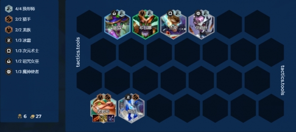 这套核心是两猎手搭前排,诺姆希前期有不错的伤害,前排可以用换型,重装以及堡垒之一,搭换型过渡后期可以很平滑转成4换型4枪手的维鲁斯,搭堡垒过渡也可以平滑玩到堡垒魔战滑板鞋。