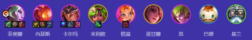 菲奥娜、内瑟斯、卡尔玛、米利欧、格温、莫甘娜、洛、巴德、基兰