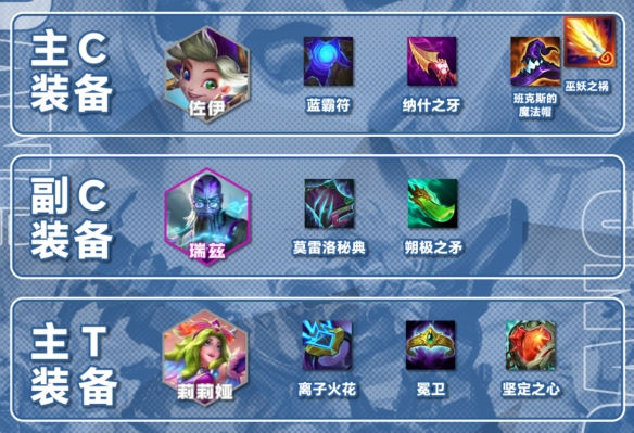 副C瑞兹/3星阿狸:法强装就可,瑞兹副C最好有个鬼书能打到敌方后排。