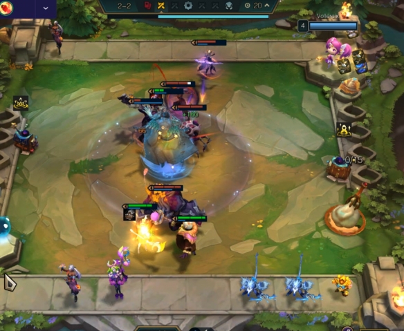 2-1拉4,2-5拉5,质量低可选择连败开,这里是开局两件基础装的城邦,直接连败开,上2咖啡叠层数。选择连败开的情况,多观察外面实力,必要时候可选择卖怪或者空城。