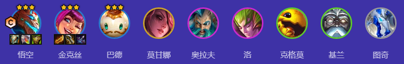 悟空、金克丝、巴德、莫甘娜、奥拉夫、洛、克格莫、基兰、图奇