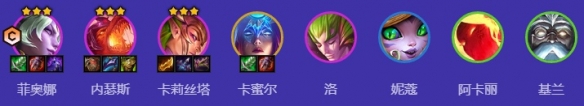 1、阵容组成:基兰、阿卡丽、卡莉斯塔、菲奥娜、内瑟斯、洛、莫甘娜、卡密尔、贝蕾亚