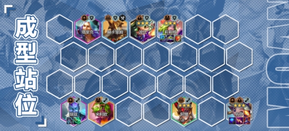阵容前排搭配的是4堡垒羁绊,开局前10秒4堡垒棋子多增加80双抗,中期抗伤能力超强,特别是3-4阶段能白嫖到塔里克的情况下,坦度算是比较优质的。
