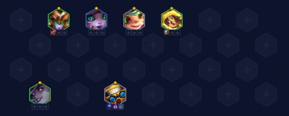 2-1升4,2-5升5人口,用吉格斯、佐伊、诺姆希、崔丝塔娜过渡都可,如吉格斯过渡开3蜜蜂+2堡垒+2术+2诅咒。
