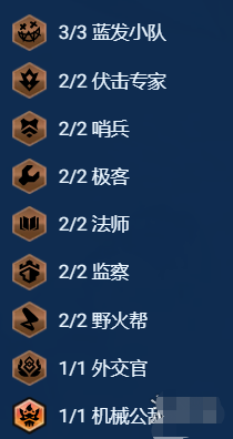 3蓝发小队、2伏击专家、2哨兵、2极客、2法师、2监察、2野火帮、1外交官、1机械公敌