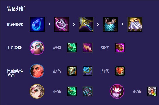 佐伊必备青龙刀纳什之牙,其余装备给法爆最好。