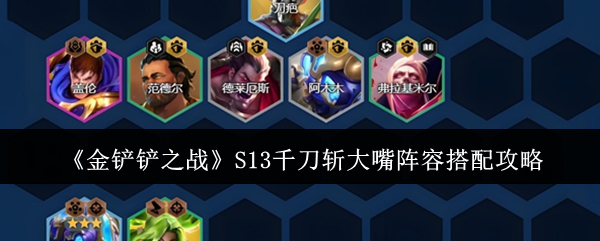 金铲铲之战S13千刀斩大嘴阵容怎么搭配?金铲铲之战游戏相信玩家们都会知道,其实金铲铲之战游戏的金铲铲之战S13千刀斩大嘴阵容怎么搭配这个问题一直烦恼着很多玩家,这一次小编让大家了解到金铲铲之战S13千刀斩大嘴阵容怎么搭配的解决方法。