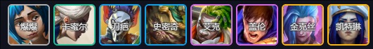 艾克、卡密尔、盖伦、史密奇、刀疤、女警、爆爆、金克斯