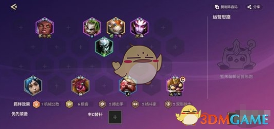 这套阵容比较克制后排脆皮主c,强度仅次于大头,但是对装备的要求比较高,如果开局物理装比较多的时候可以冲。