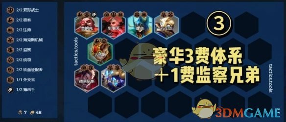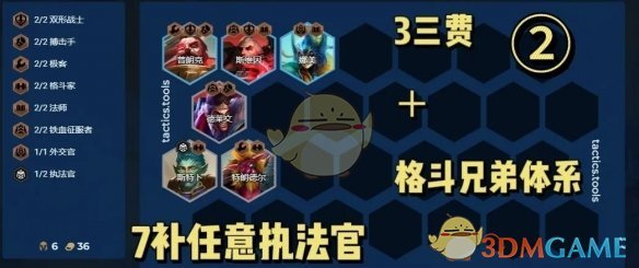 大多数羁绊追踪者都需要这三位棋子,在拿到他们三的情况下,补充监察/格斗等羁绊很容易就能开出八羁绊。