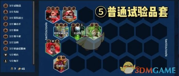 羁绊:3试验品、2先知、2双形战士、2搏击手、2极客、2格斗家、2法师、2铁血征服者