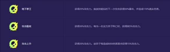 4、伤害吸收在没有经济刷新的情况下也可以选择,伤害吸收缺点启动比较慢,地下拳王第一个技能就可以暴击。