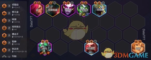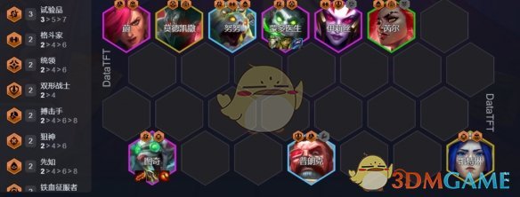 8人口D牌时以3试验拼为基础去补充羁绊。没D到铁男可以用任意统领卡补充。可以达到7羁绊。稳定21%以上的全队增伤