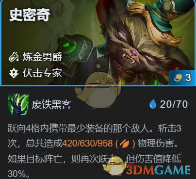 没有3炼金就3-2升6小D一下(劣势开局收100层奔吃分玩),上伏击和炼金牌,装备给史密奇换怪,多观察外面情况,遇到弱的就拆史密奇装备。