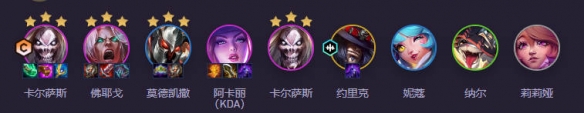 卡尔萨斯、佛耶戈、莫德凯撒、阿卡丽(KDA)、卡尔萨斯、约里克、妮蔻、纳尔、莉莉娅