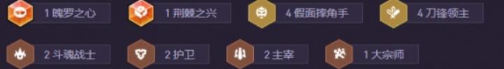 1魄罗之心、1荆棘之兴、4假面、4刀锋、2斗魂、2护卫、2主宰、1大宗师