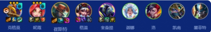 克格莫、妮蔻、卡牌、风女、洛、格温、奎桑提、凯南、石头人