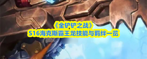 金铲铲之战S16五费卡【海克斯霸王龙】技能与羁绊分享来了。作为海克斯机甲/皮尔特沃夫/枪手棋子,其技能“海克斯军械库”可提供护盾并持续发射激光与导弹,造成范围物理伤害。需登场累计9星的独特皮城棋子解锁,是强力的持续物理输出核心。