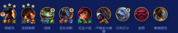 2、其他2星斗士神盾迅击裁决随便搭,有5开5,有7开7,吃到船长3星泰坦3星,开始拆到4比5比拼5费。