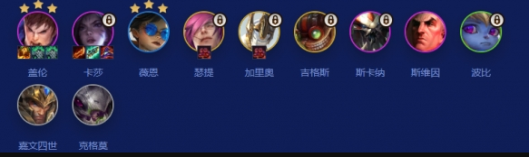 盖伦、卡莎、薇恩、瑟提、加里奥、斯卡纳、斯维因、波比、克格莫、吉格斯、嘉文四世