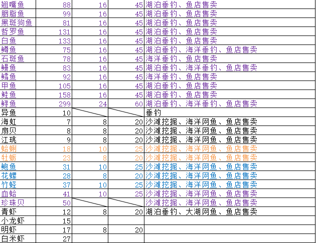 江珧,9,8,20,沙滩挖掘、海洋网鱼、鱼店售卖