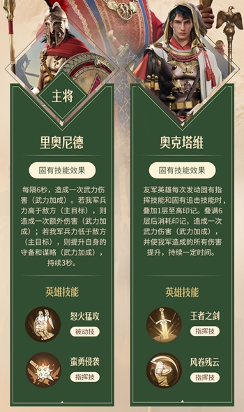 2、推荐搭配主将里奥尼德和奥尼塔维,这套阵容配合阵容的指挥技。