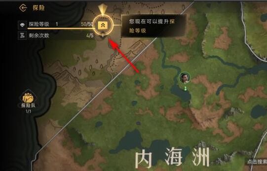2、在【探险】页面点击探险等级右侧的升级图标。