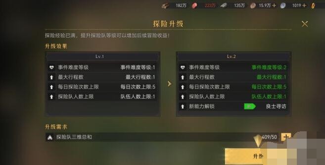 探险队升级方法: