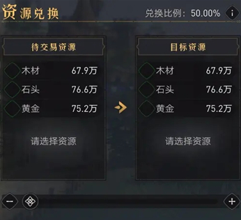 在主城内解锁建筑市集后,玩家可以在市集将木材、石头和黄金三种资源进行置换,对于紧缺的资源可以解燃眉之急。