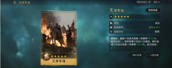 该技能依靠普攻造成伤害,因此适合所有武力普攻英雄阵容。
