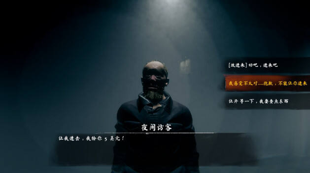 此时在敲门的顾客会有 人类 以及 怪物的伪装 的两种身份,玩家可以通过交流来得知他们需要留夜的原因,以此来判断其身份,来决定是否留下顾客。