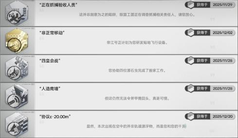 基础类如“非正常移动”(滑索移动5次)、“四皇会战”(击退4只源石虫)。