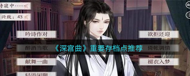 《深宫曲》是一款高自由度养成经营宫斗类剧情游戏,发表于网易旗下的易次元平台。游戏中大家随时可以存档,那么在哪存档比较好呢?很多玩家可能并不清楚,下面手游网小编就给大家带来了《深宫曲》重要存档点推荐,感兴趣的速来围观吧!