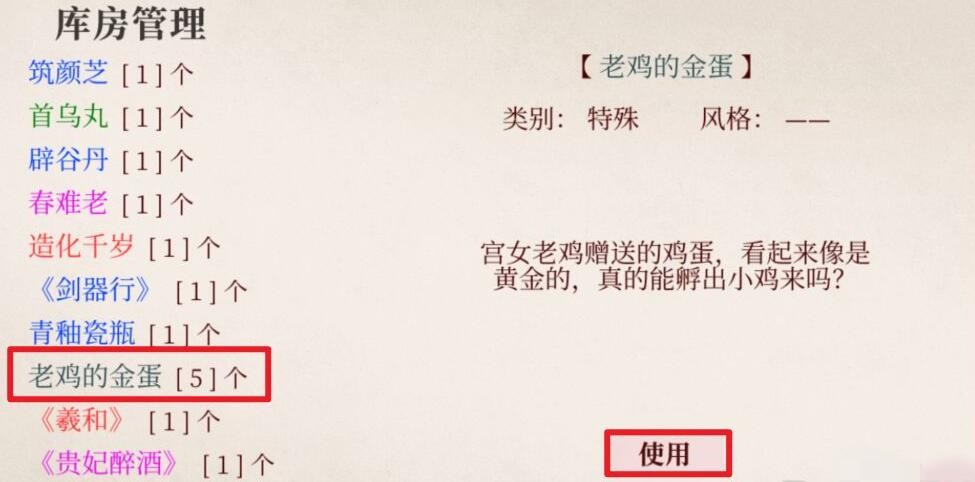 这个金蛋自己吃所有属性加一百,给别的妃子吃涨好感,随机属性减五百(一般是前四个属性之一)
