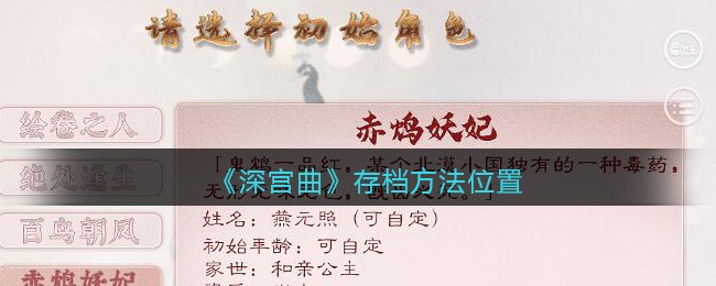 以上就是小编整理带来的《深宫曲》存档方法位置,大家还喜欢吗?更多精彩内容,请点击关注手游网,小编将持续为您更新!