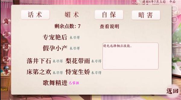 1、音律、舞技:侍寝可表演,宴会可表演(需要另外学);