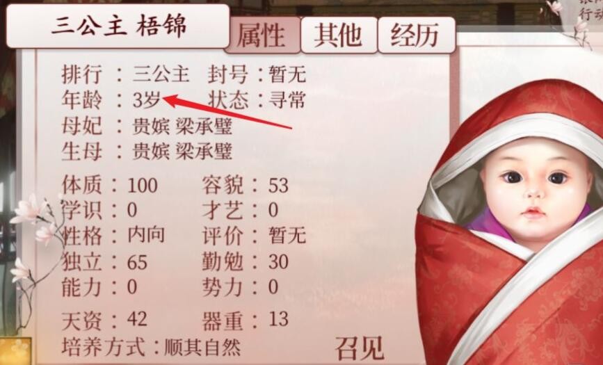 查看皇嗣的年龄,年满4岁即可换立绘。