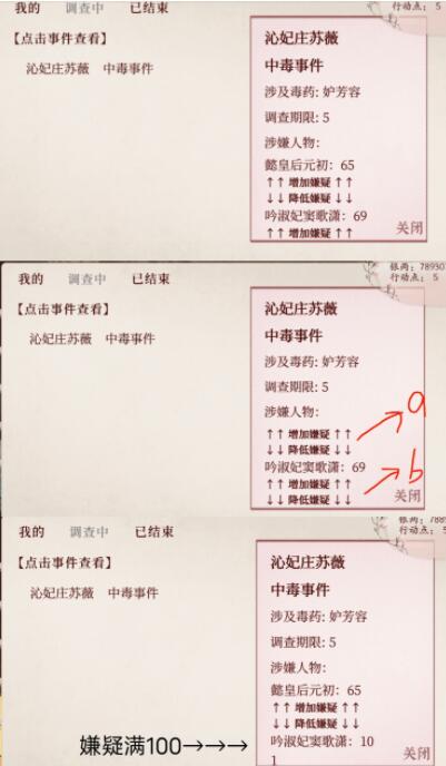 宫廷事务-调查中,看案件嫌疑人的嫌疑度
