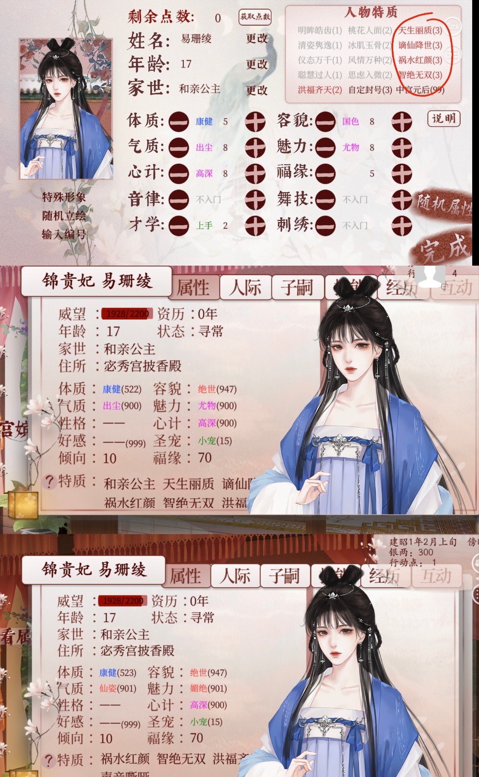 ③魅力气质,点数加到8 + tag,进宫后面板900(紫)