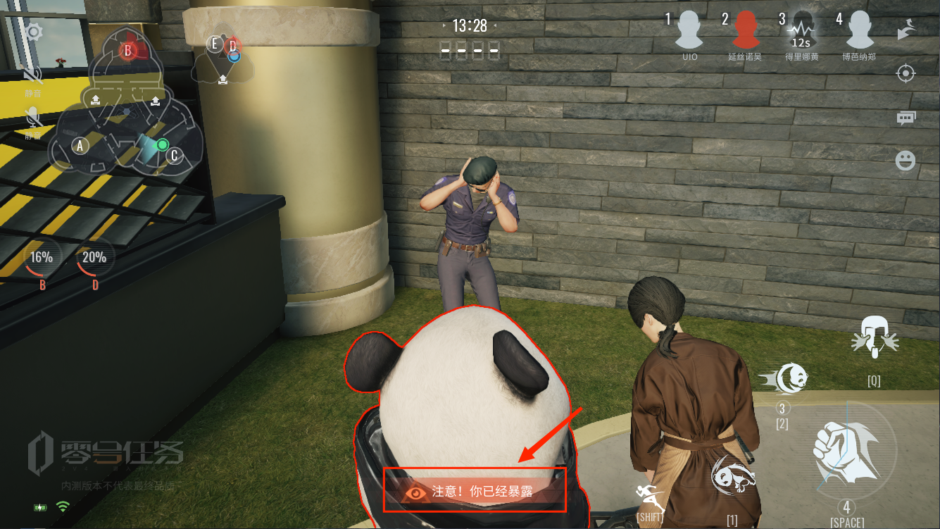 B:如图所示:我们可以利用游戏机制,攻击NPC进行小范围的筛选。注意:攻击NPC会受到惩罚,短暂暴露自己的位置。