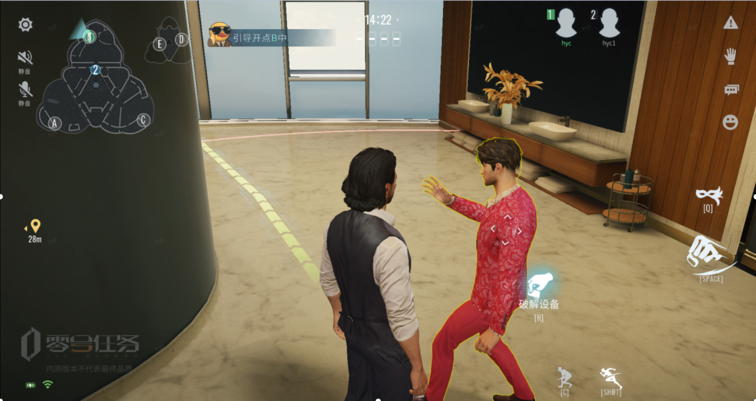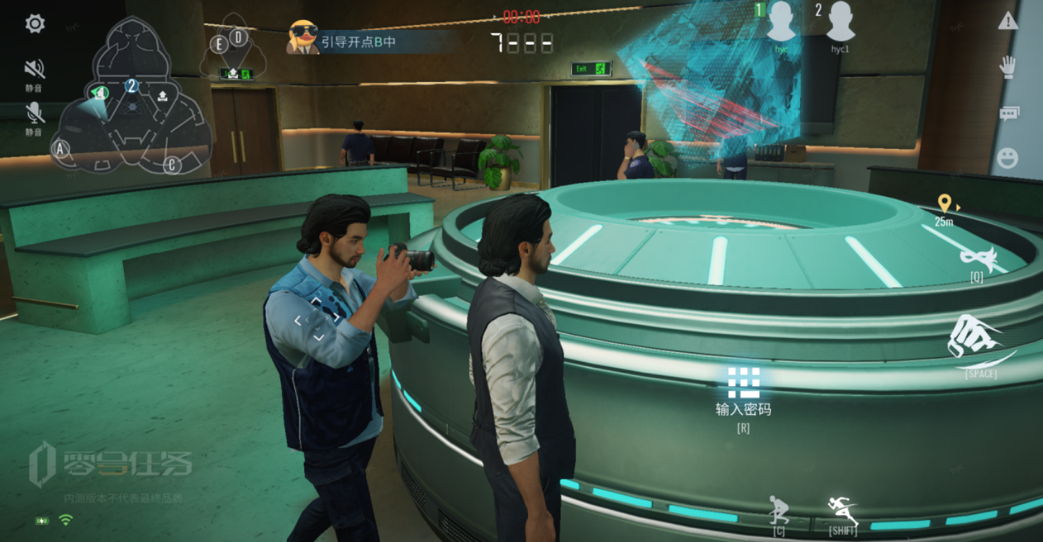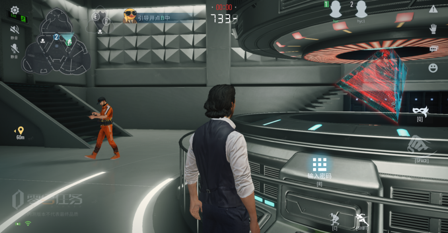 地图上有5位携带动态密码的NPC(一楼3位,二楼2位),靠近并按下“破解设备”,即可开始传输密码。一个NPC只能有一名天狼星探员破解,全队共享破解进度。