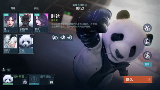 3、玩家在进入对局以前,可以在这五个角色中自由选择一个,然后点击确认开始游戏。